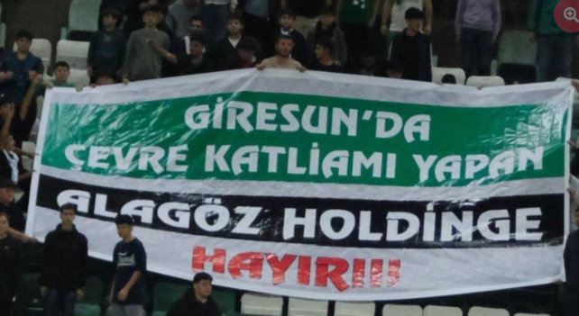 Çotanak Stadyumu’nda “Giresun’da Çevre Katliamı Yapan Alagöz Holdinge Hayır” yazılı pankart açıldı. Maçı, Giresun Valisi Mehmet Fatih Serdengeçti de tribünden izledi.