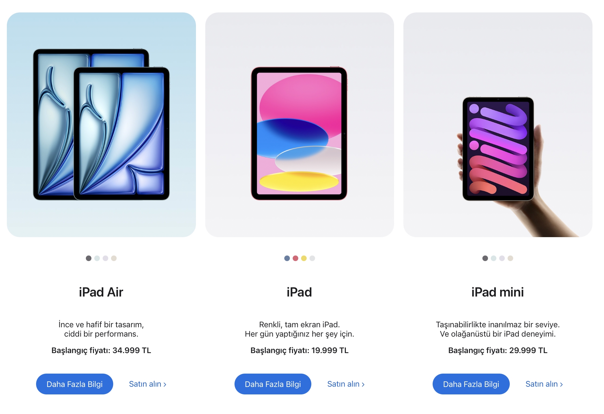 Zamla birlikte en ucuz iPad’in fiyatı (11 inç iPad A16) 16.999 TL’den 19.999 TL’ye, iPad Mini A17 Pro fiyatı 24.999 TL’den 29.999 TL’ye, iPad Air M3 fiyatı 29.999 TL’den 34.999 TL’ye yükseldi.